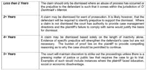 - Delay Alone: The passage of time in itself will allow for the dismissal of proceedings where the delay has lasted for 4+ years and +5 years of inactivity, the courts have a broad power to strike out proceedings save in exceptional circumstances, which will assist with facilitating the timely closure of dormant files.