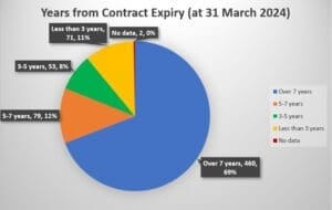 The latest data reveals (as depicted below) that, as of 31 March 2024, many PFI contracts will expire in less than seven years and so the clock is very much ticking[7].